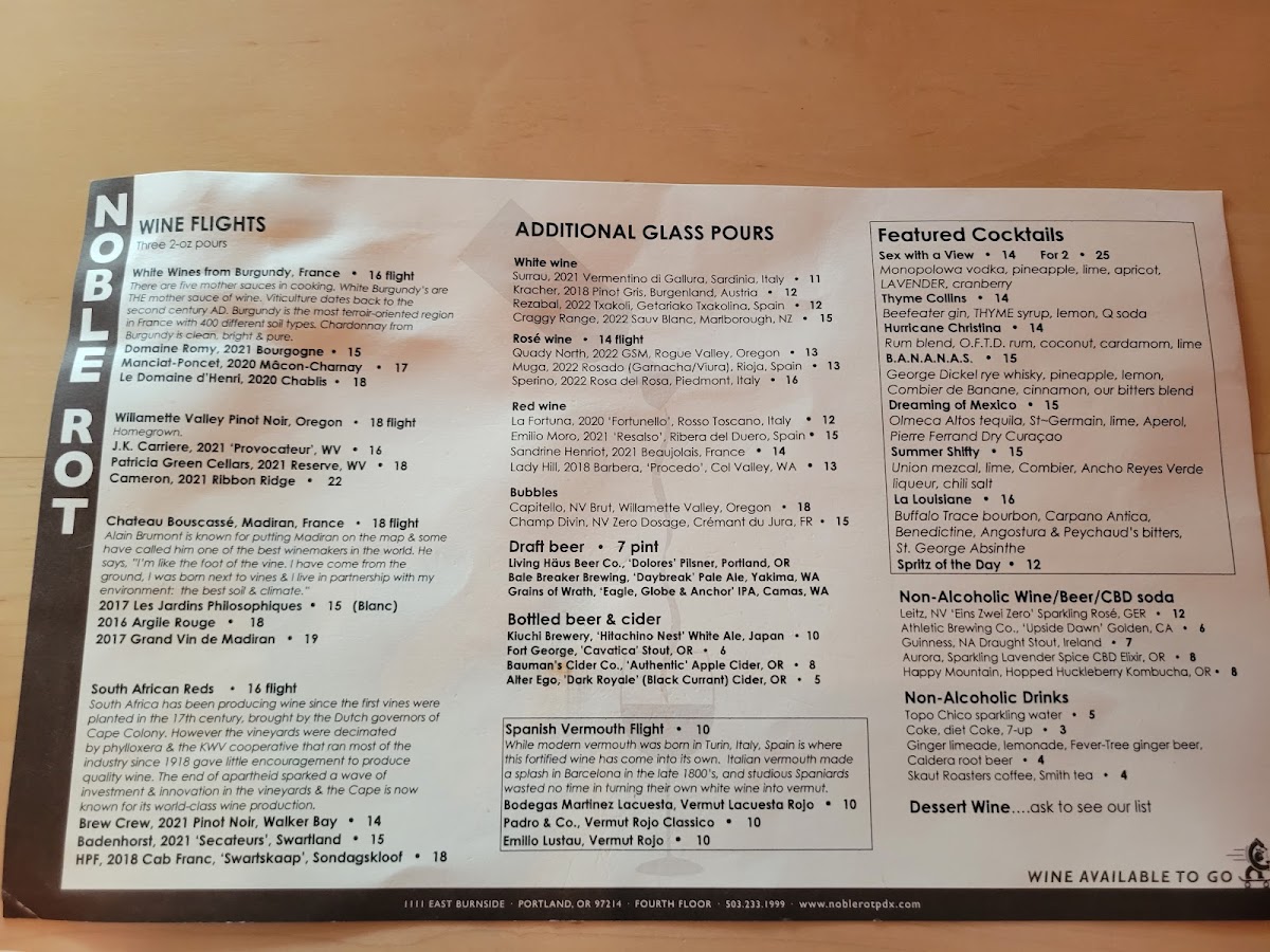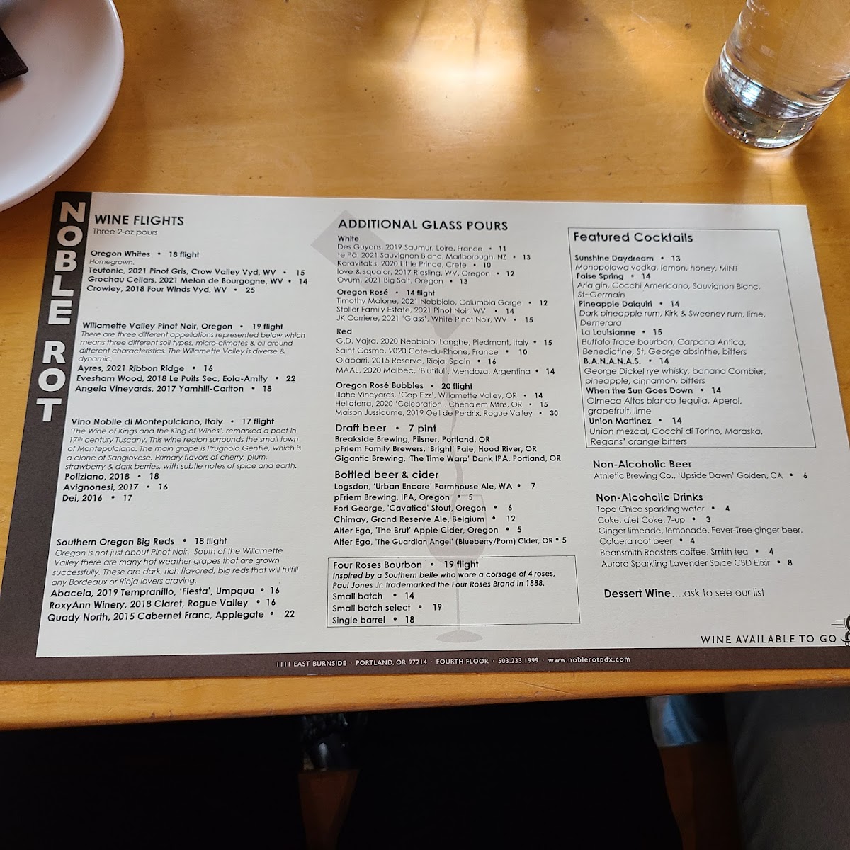 Welcome to Noble Rot, a must-visit dining destination nestled atop Portland's vibrant hills at 1111 E Burnside St. Known for its stunning views, this delightful restaurant offers a warm, intimate atmosphere perfect for any occasion. The menu features a tantalizing selection of seasonal dishes and a diverse array of beverages, including 150 wines available by the bottle that change weekly, and enticing crafted cocktails made with local spirits.